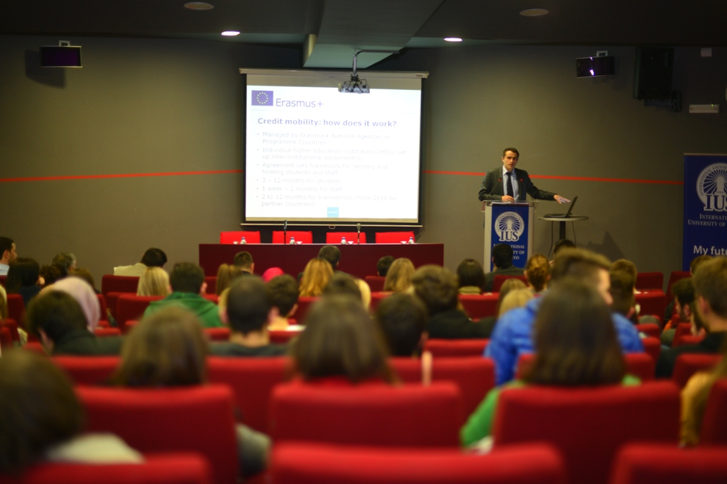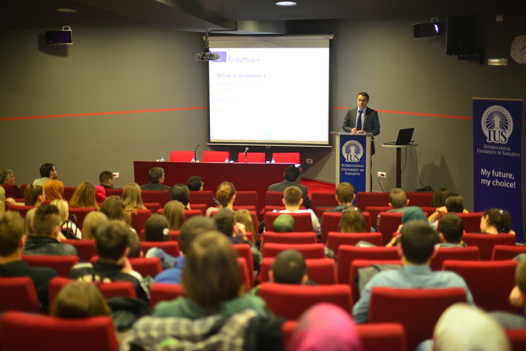 Suad Muhibić, Director of the Erasmus+ Office in BiH, gave a lecture on "Possibilities in the Area of Higher Education" at the International University of Sarajevo (IUS) on Wednesday, November 19, 2014. The lecture was organized by international Relations Office of IUS and the goal was to introduce the academicians and students possibilities of participation of BH higher education institutions in the new EU Programme. The Erasmus+ Program involves helping the EU Member States and NON-EU states in the field of education, youth and sport.