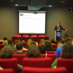 Distinguished guest, Suad Muhibić presented the basic components and activities of the Erasmus + program with special emphasis on the presentation of a new call for proposals in the field of higher education. He also talked about the projects related to strengthening the capacities in higher education, international credit mobility, joint master programs, activities in the framework of the Jean Monnet program , and many other opportunities. During the lecture, Muhibić emphasized the importance of inclusion of BH institutions in this EU educational program and possible benefits for students, faculty and educational institution in general. "One of the most important actions of the program is the mobility. The students can go to study in the EU countries for a period of three months up to a year, and academic staff can go to a variety of trainings at universities and institutions of the EU for a minimum of five days to three months. It is important to mention that students can spend a part of their studies doing their internships abroad, joining voluntary actions, and also get different scholarships”.