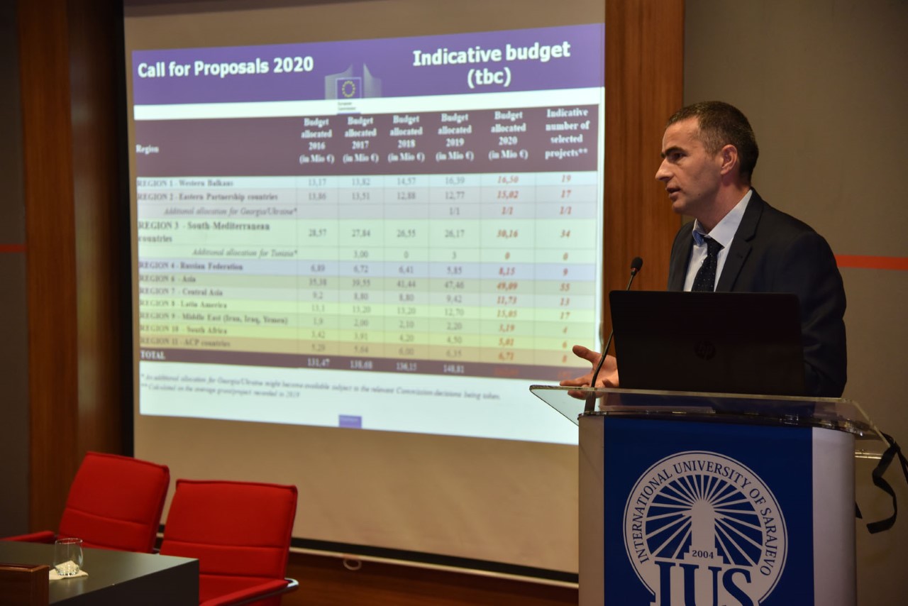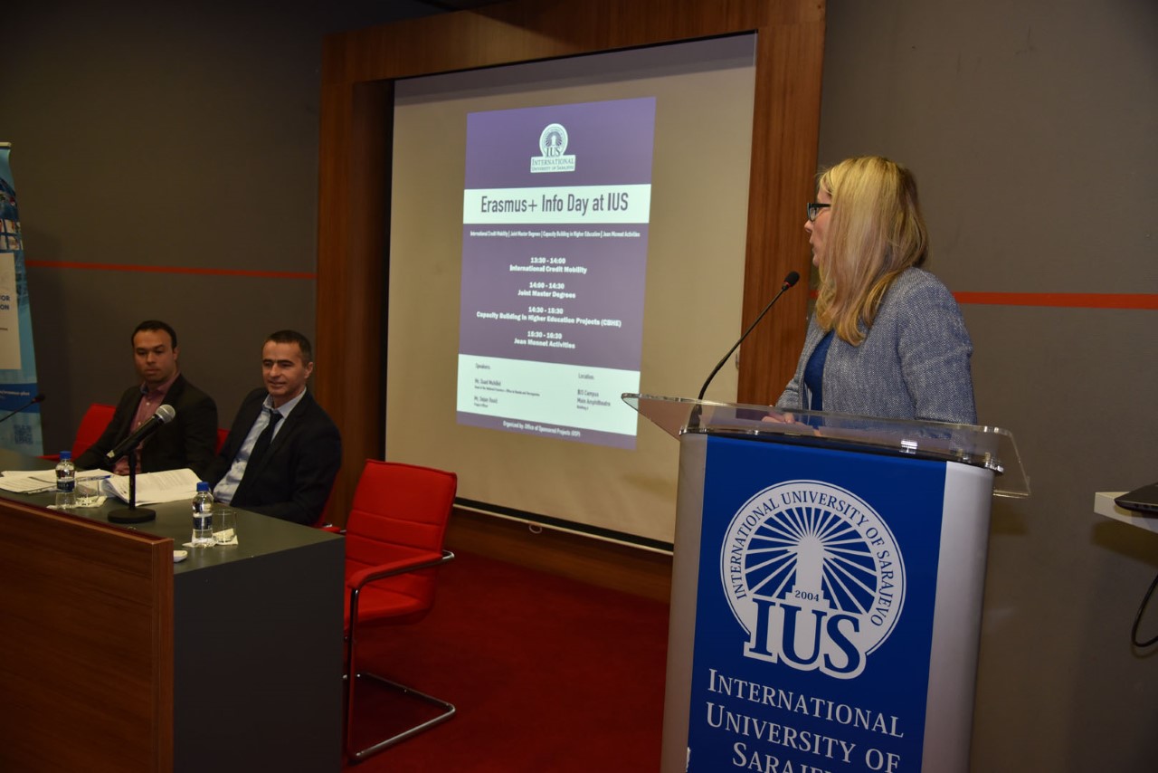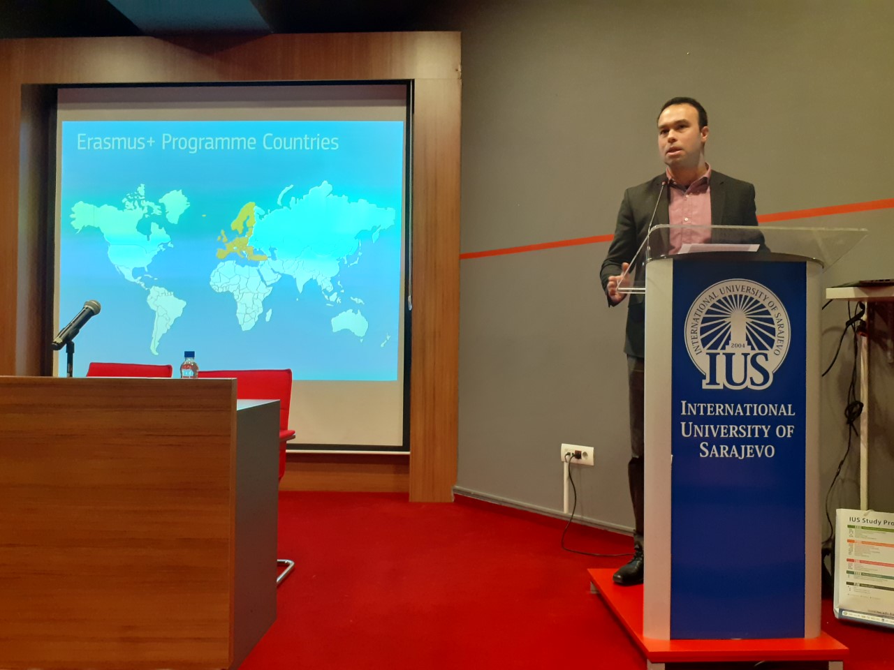 On December 4, 2019, the Erasmus+ Info Day at IUS took place. The Erasmus+ Info Day represents one event in the series of events that have been organized by Nadja Beglerovic M.Ed/MA, a Project Manager at the Office of Sponsored Projects (OSP). Mr. Suad Muhibic, Head of the National Erasmus+ Office in Bosnia and Herzegovina and Mr. Dejan Rosic, Project Officer visited our university and presented different components of the Erasmus + Program, which included Capacity Building in Higher Education projects, Jean Monnet Activities/Projects, International Credit Mobility and Joint Master Degrees.