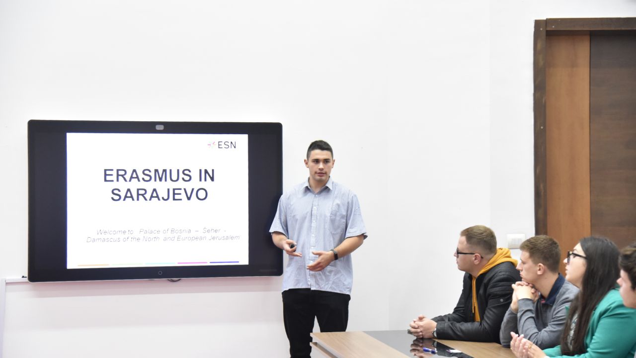 Apart from the new incoming students, the orientation meeting was joined by the Erasmus alumni, ex-Erasmus students, who, at the end of the meeting, helped the new students to get to know the IUS Campus better. The meeting was also attended by the Erasmus Student Network representatives, Ms. Zerina Omerbašić and Mr. Damir Hanić, who are both IUS students.