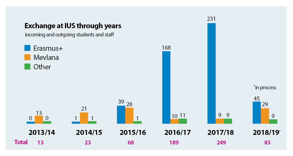 We are very proud of our results and the international success that we have achieved, and we can undoubtedly say that the active IUS participation in student and staff mobility has significantly contributed to the boosting of internationalization and climb in the rankings of the University. At the moment, IUS is one of the top universities in BiH in the exchange numbers.