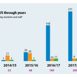 During this period, more than 600 incoming and outgoing students, academic and administrative staff have taken part in the exchange either through Erasmus+ or Mevlana programs, individual memorandums of understanding or individual exchange. The cooperation spans from Turkey to France, Luxemburg, Italy, Germany, Ireland, Portugal, Spain, Poland, Slovakia, Lithuania, Latvia, Estonia, Romania, Bulgaria, Macedonia, Morocco, Iran, Malaysia and USA.