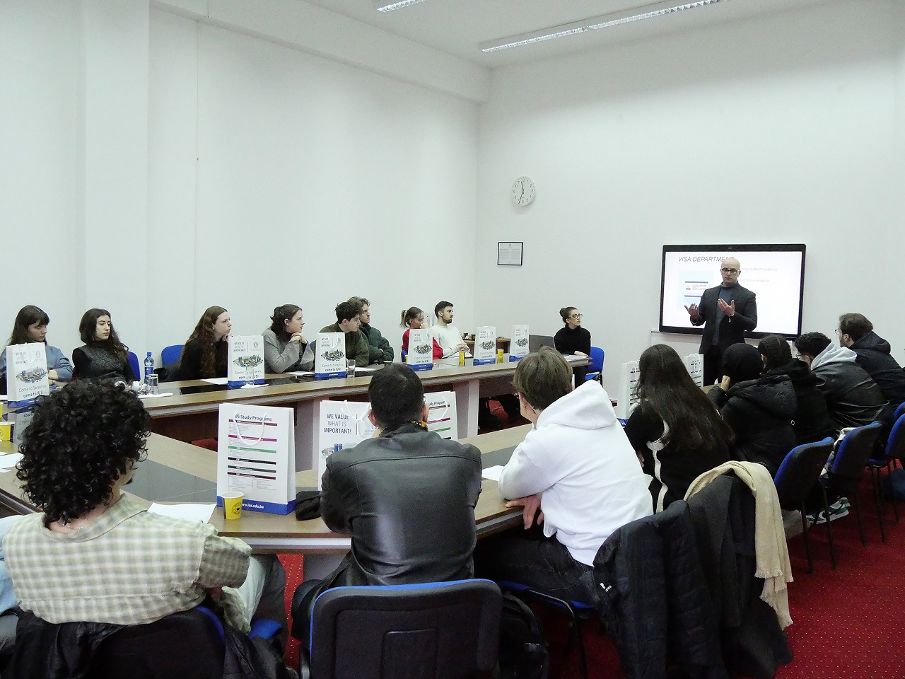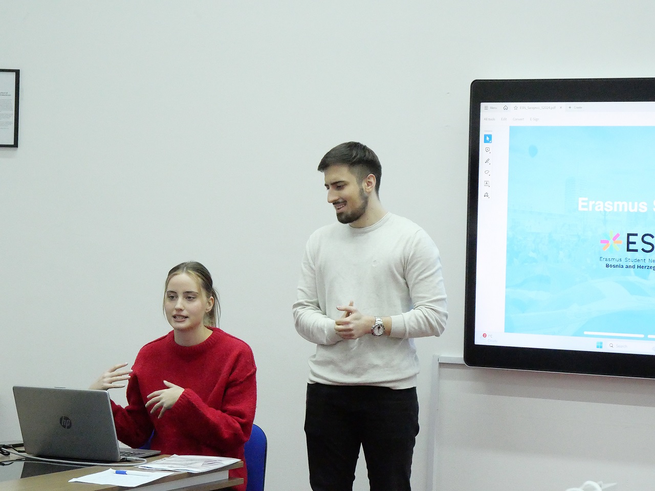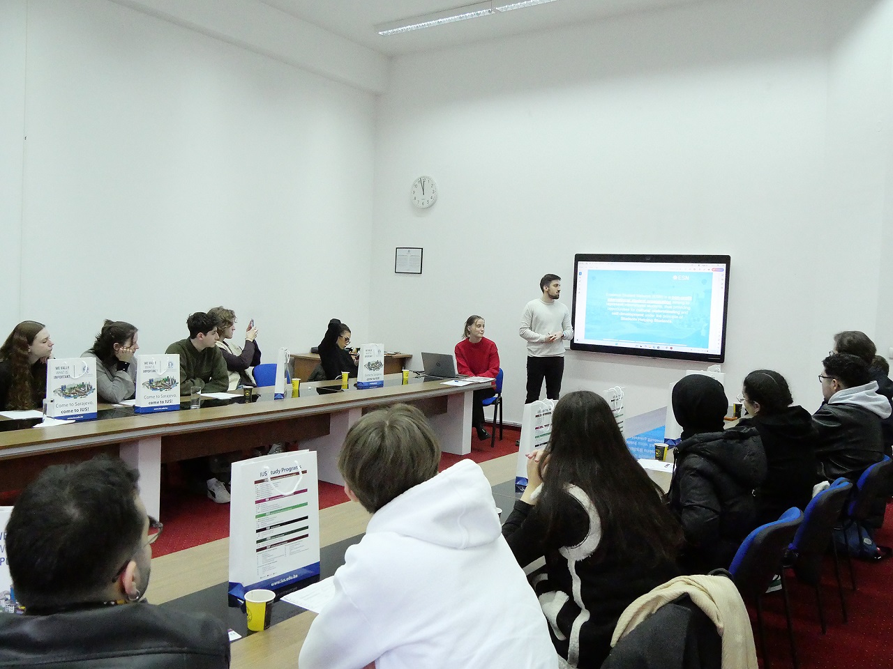 IRO Manager, Mr. Mugdim Alihodžić, addressed the group and provided a detailed explanation of the residence permit process and how students can obtain their visas through university services. Additionally, Zerina and Amil from the Erasmus Student Network (ESN) shared insights on the extracurricular activities available to Erasmus students.