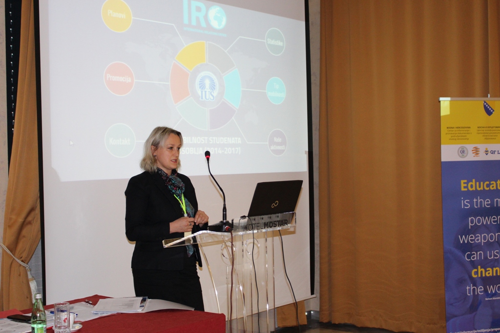 Deputy Secretary General Muhamed Semiz in his presentation talked about his experiences in the process of recognition of foreign qualifications at the IUS. Lamija Hadžimurtezić, International Relations Office manager, emphasized in the gathering that last year as many as 208 IUS students and staff took part in Erasmus+ exchange, which is a record number taking into account the total number of students at the IUS. This is also a great success for our university due to the fact that the IUS is a relatively young university.