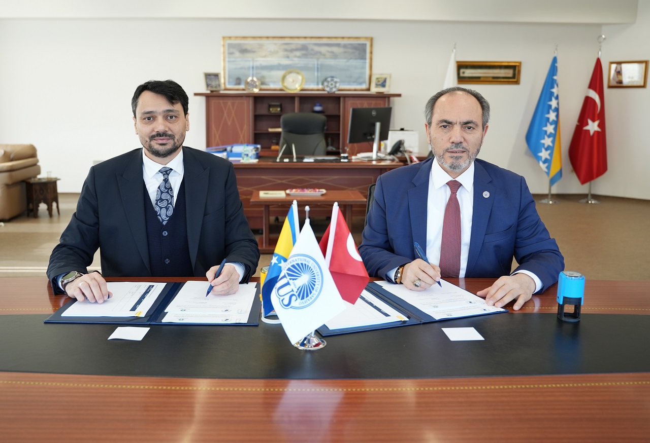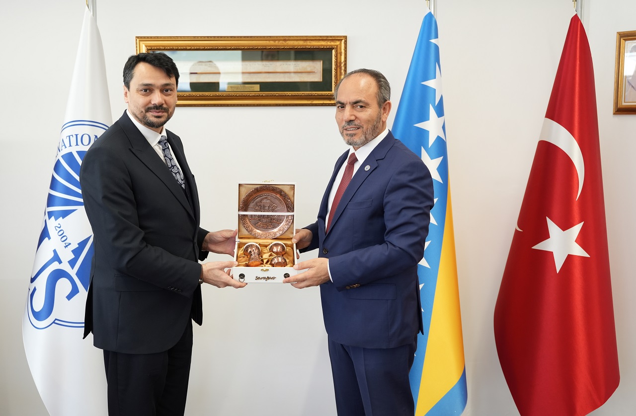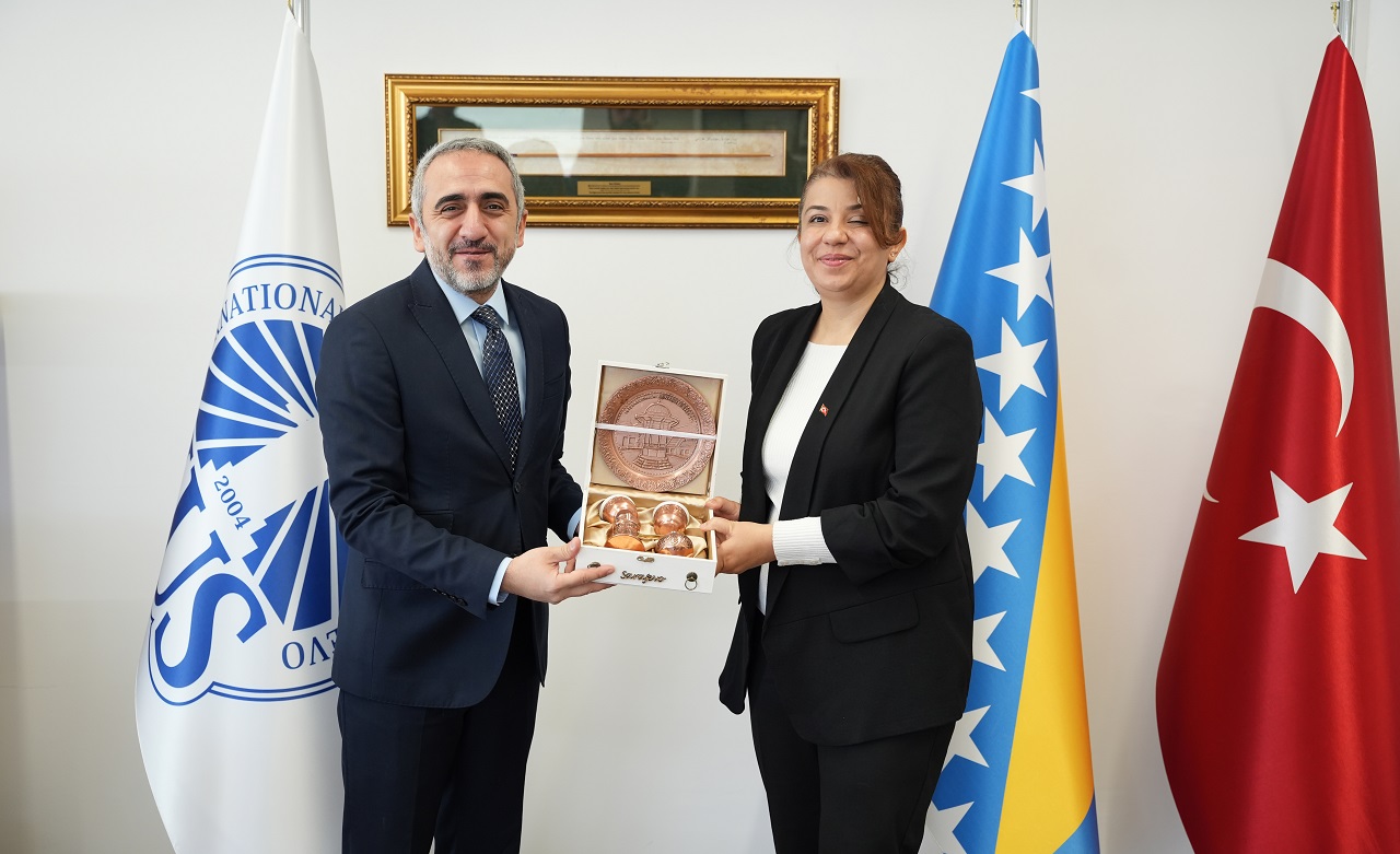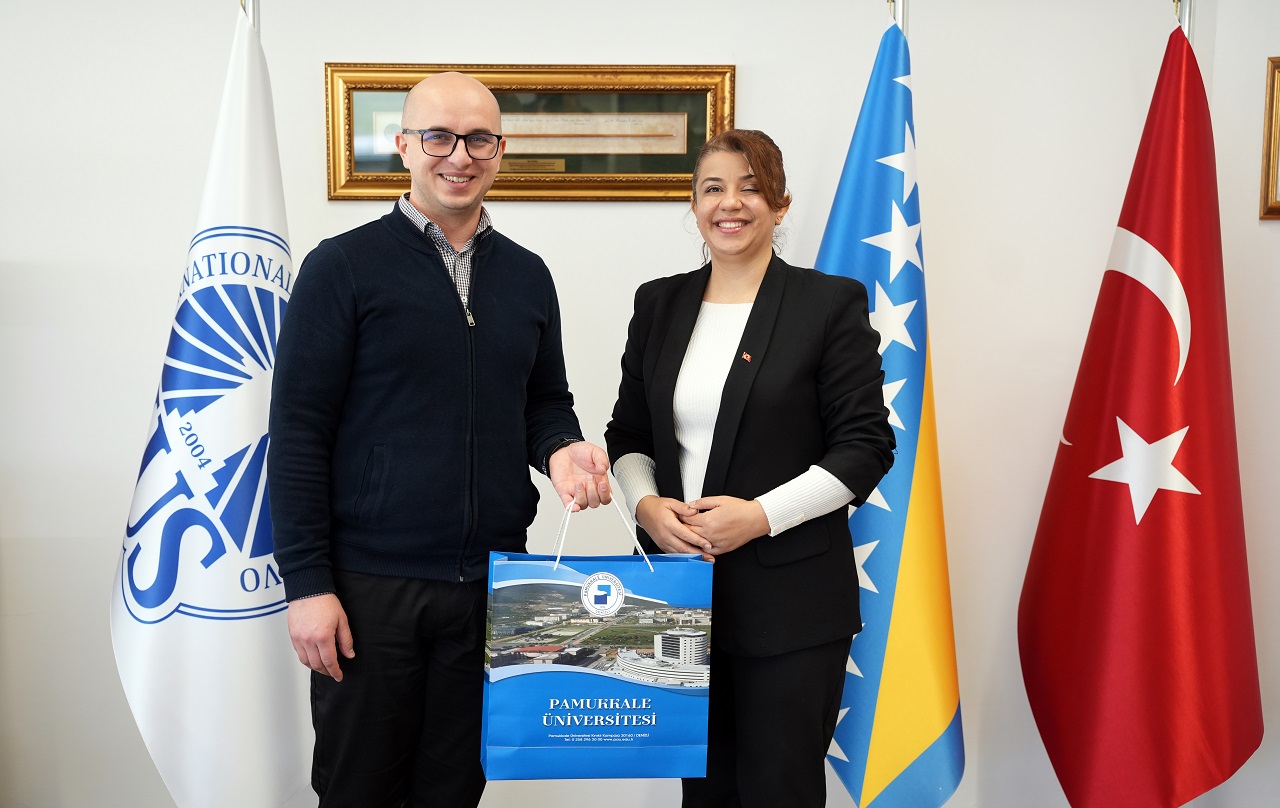 On Monday, December 8, 2025, the International University of Sarajevo (IUS) welcomed a delegation from Pamukkale University, headed by Rector Prof. Dr. Mahmud Güngör and International Relations Office Coordinator Dr. Yaşam Demir. The guests were received by IUS Rector Prof. Dr. Ali Osman Kuşakcı, Vice-Rector for General Affairs Assoc. Prof. Dr. Muhammed Yasir Göz, and IRO Manager Mr. Mugdim Alihodžić.
